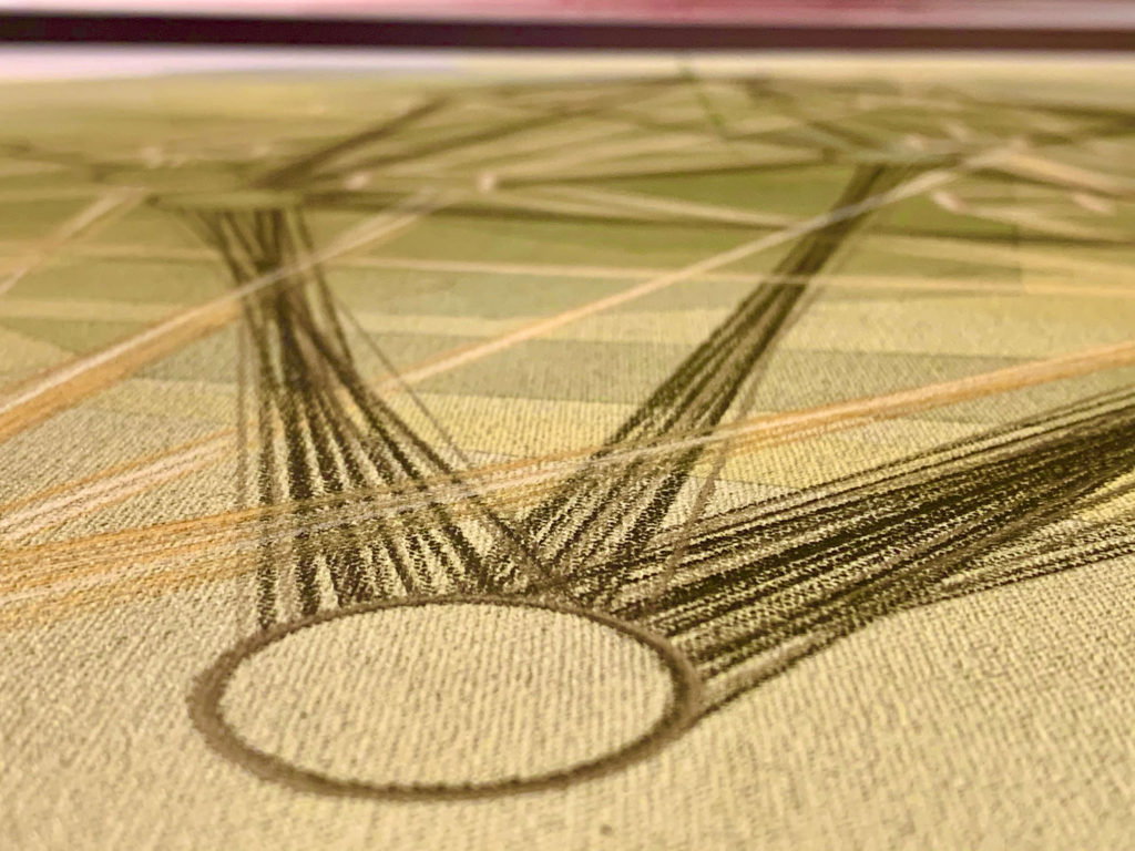 Portrait of a Game I, II and III provides an alternative view of the game of football. A view that unveils the tactical components of the game, and which shows the dramatic and beautiful patterns and shapes that the movements of the players and the ball create during a match. These geometric shapes reflect the teams’ overall strategies, their relative strengths and weaknesses, and the roles and responsibilities of individual players. The images are based on analysis of event data collected from 3 different matches, and the trilogy demonstrates differences in team form and compactness, frequency of crosses, and shots on goal. The artworks are mixed- media on canvas and each measures 102cm x 152.5cm (40” x 60”). ©2021 Soren Meibom, all rights reserved.